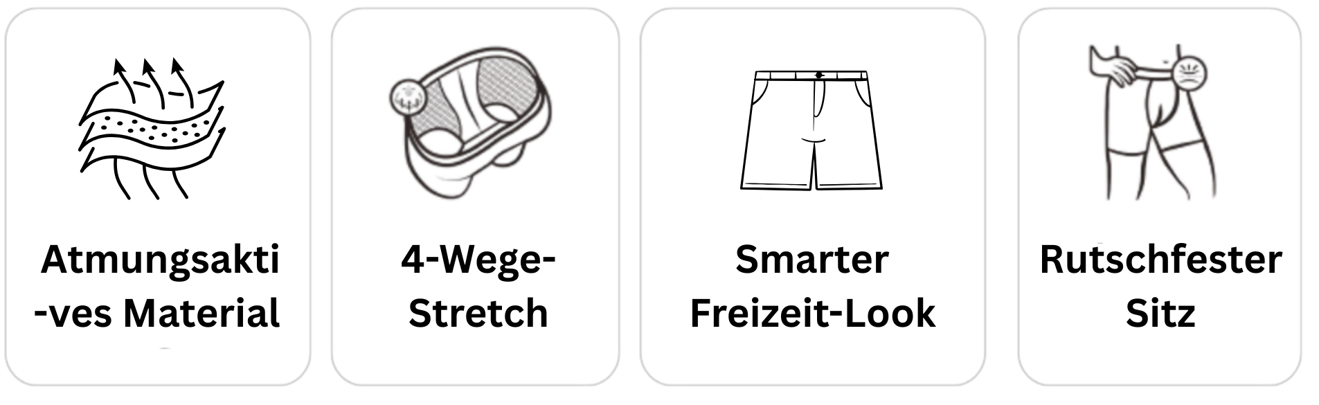 Schließen Sie sich Tausenden zufriedener Kunden an und erleben Sie die Hello Men's Classic Shorts selbst. Es geht nicht nur darum, etwas Neues auszuprobieren – es geht darum, ein völlig neues Maß an Komfort und Selbstbewusstsein zu erreichen. Unsere einzigartige Stoffmischung ist weich, flexibel und passt sich Ihrem Körper an. So können Sie sich frei bewegen und atmen. Probieren Sie sie aus und überzeugen Sie sich selbst, warum die Hello Men's Classic Shorts mehr als nur Shorts sind – sie bieten ein stylisches, alltagstaugliches Komfort-Upgrade, auf das viele Umsteiger vertrauen.